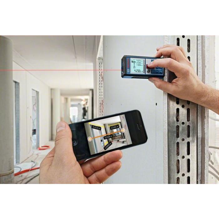 • Intercambio simple y documentación inteligente de valores de medición gracias a la aplicación GLM measure&document. Dispositivos Android compatibles: smartphones y tablets a partir de Android 4.0 / Dispositivos iOS compatibles: a partir de iPhone 4S, iPad (a partir de la 3.ª gen.), iPad Air (a partir de la 1.ª gen.), iPad mini (a partir de la 1.ª gen.)