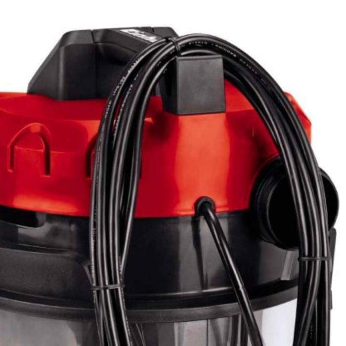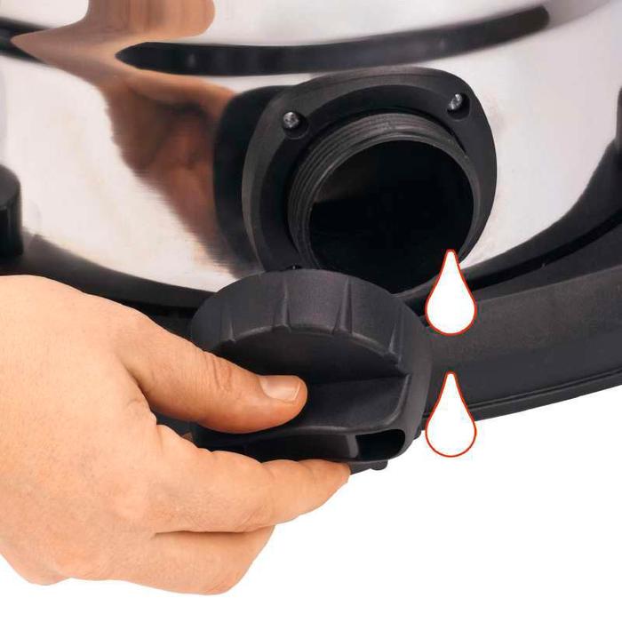 Su depósito de acero fino de 30 litros de capacidad ofrece un amplio volumen para una gran variedad de tareas de limpieza de mayor envergadura dentro y fuera de casa y del taller
